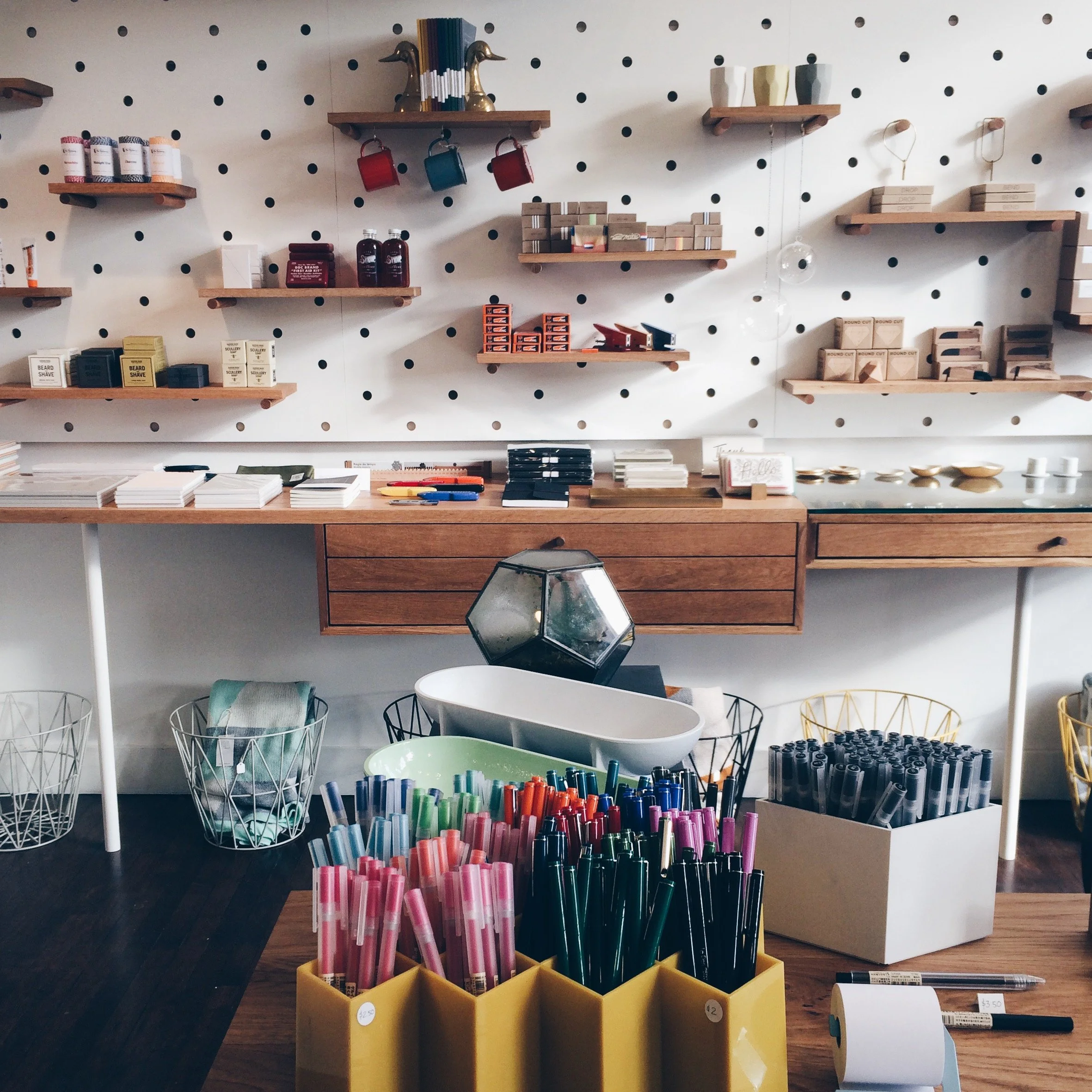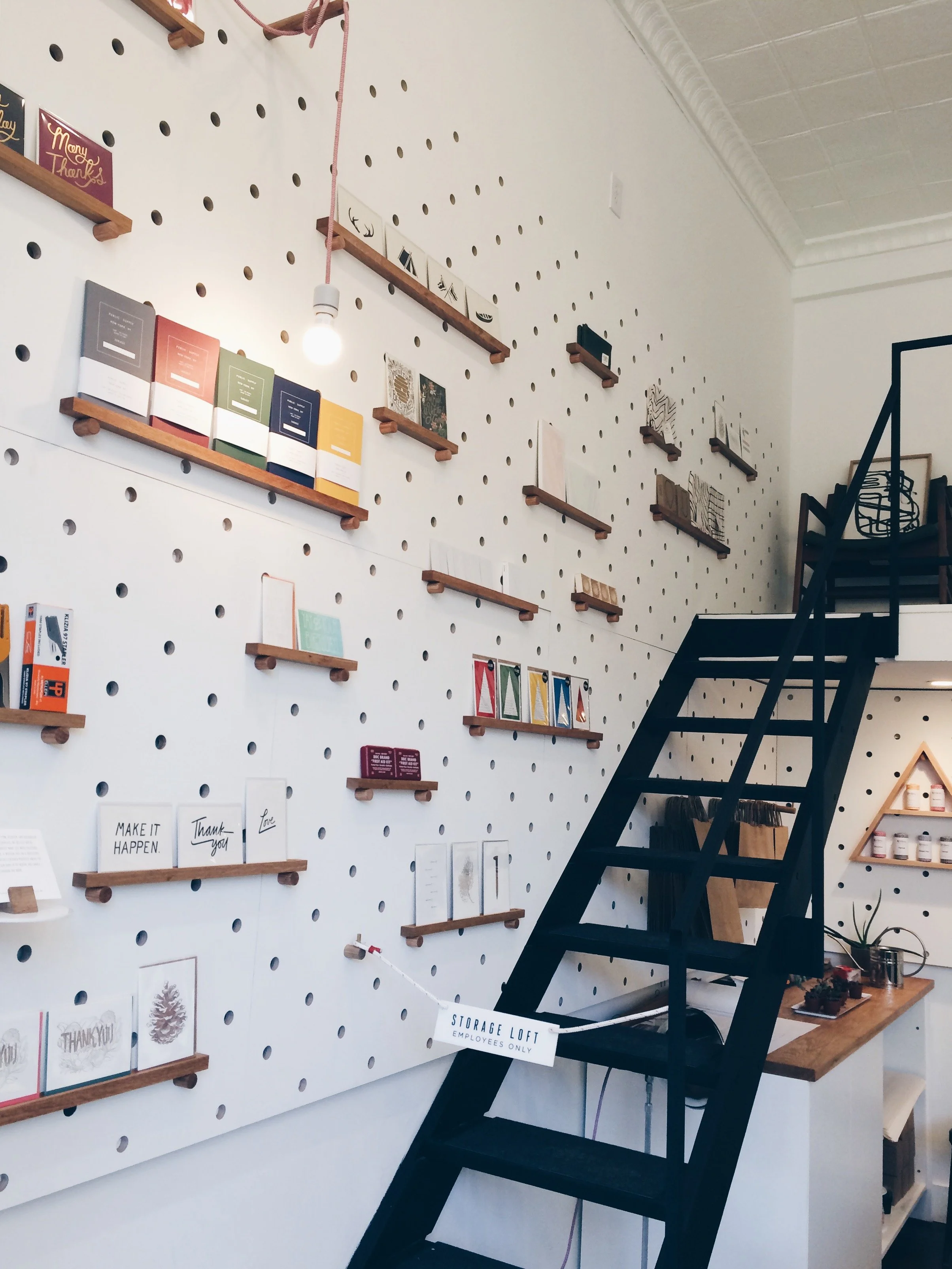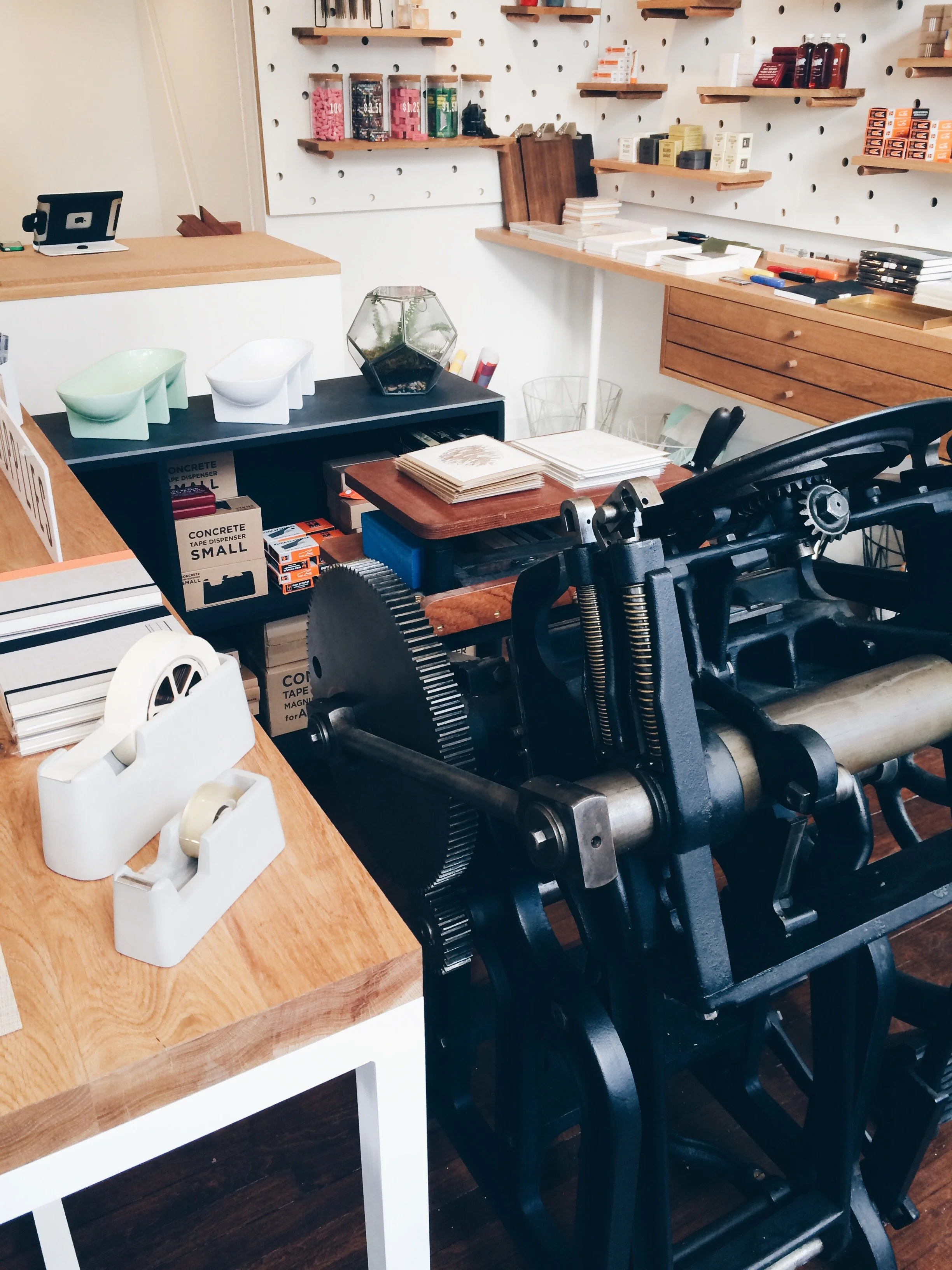 Loyal Supply Co. have moved into Union Square and are definitely lifting the store interior design game, it is solid! Those chunky peg boards! They have a little letterpress right smack in the middle of the store and are printing their own cards and stationary. Very, very nice.