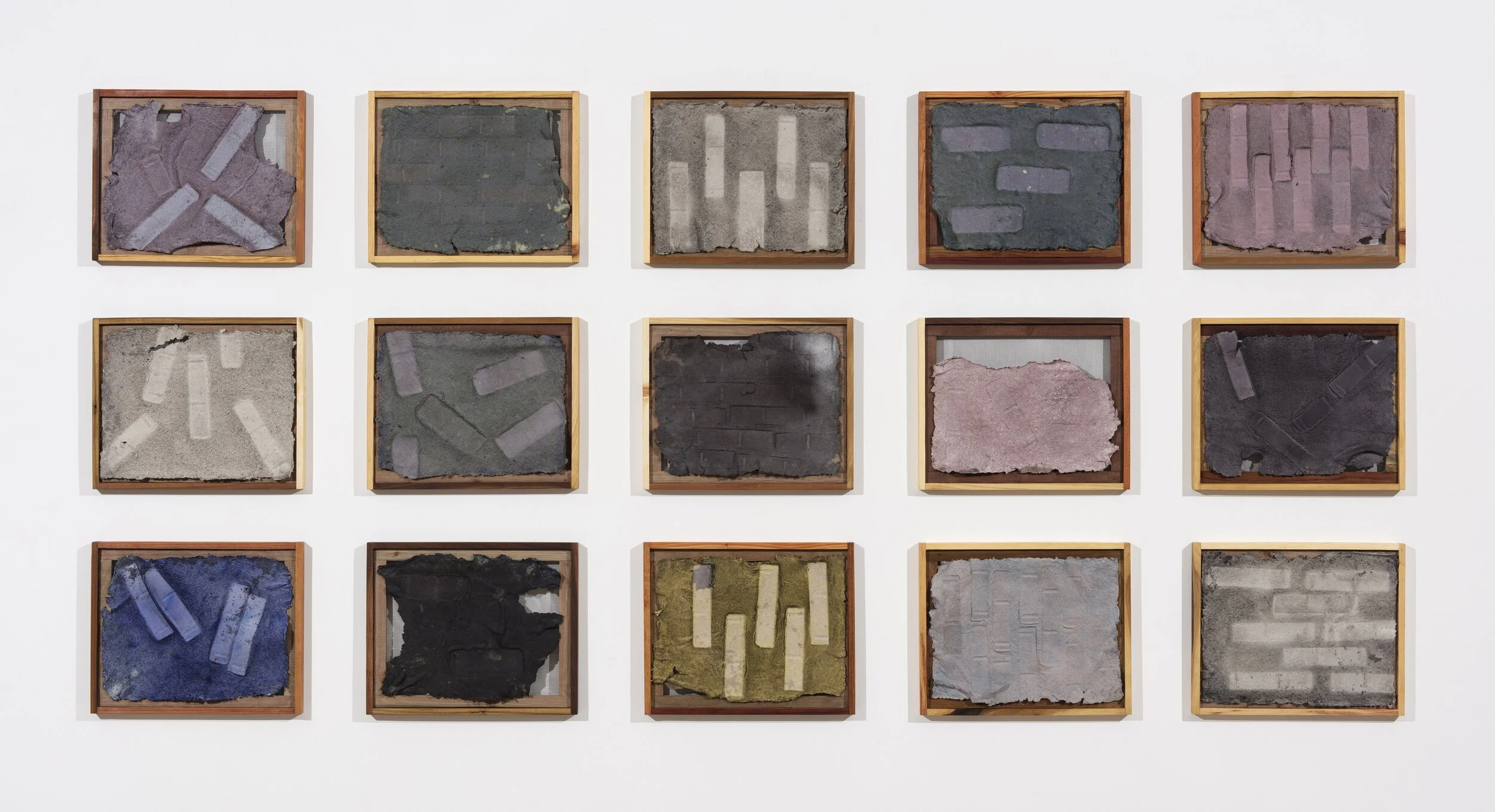 My work ranges in materials, but I am currently engaged in an ongoing paper making project. It started as a way to cope with awareness of the spaces I was inhabiting. I yearned for material with a past life, capable of a new cycle. As the pulp is wet, I bind them with my fingers by pushing down to form larger pieces, leaving behind my fingers' trace. I then use bricks and other objects as tools to emboss the pulp as it dries, creating a print with the memory of the tool and its absence. The embossment leaves behind a trace, perhaps embodying how our bodies and architecture absorb our existence leaving behind permanent impressions or scars. Both materials, paper, and bricks are earth broken down and put back together to form something else. I enjoy feeling these changes right under my hands or with my whole body.